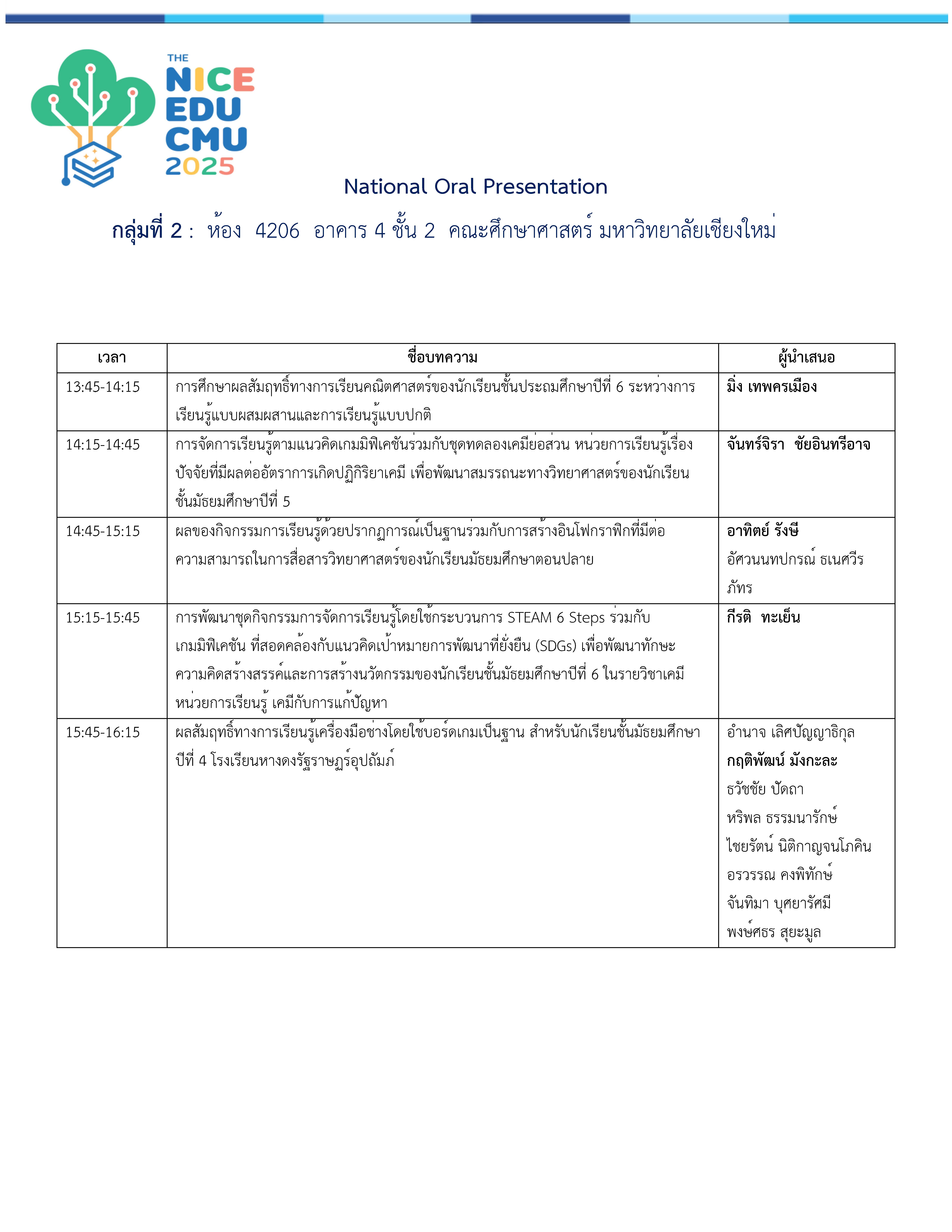 รายชื่อและลำดับผู้นำเสนอผลงาน ระดับชาติ
